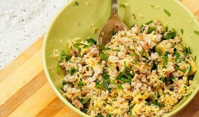 You can add fresh herbs and cheese to the filling. Chop a small bunch of any fresh herbs finely and add to the filling.