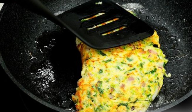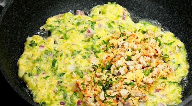 When the zucchini pancake is slightly toasted, cover the filling with its other half.