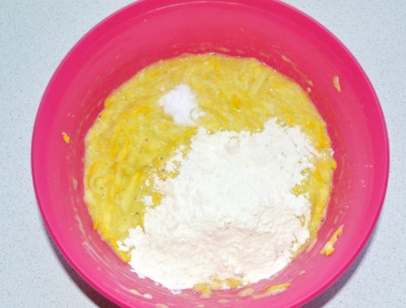 Rub it with a grater and leave for 10 minutes. Then squeeze and drain excess liquid.